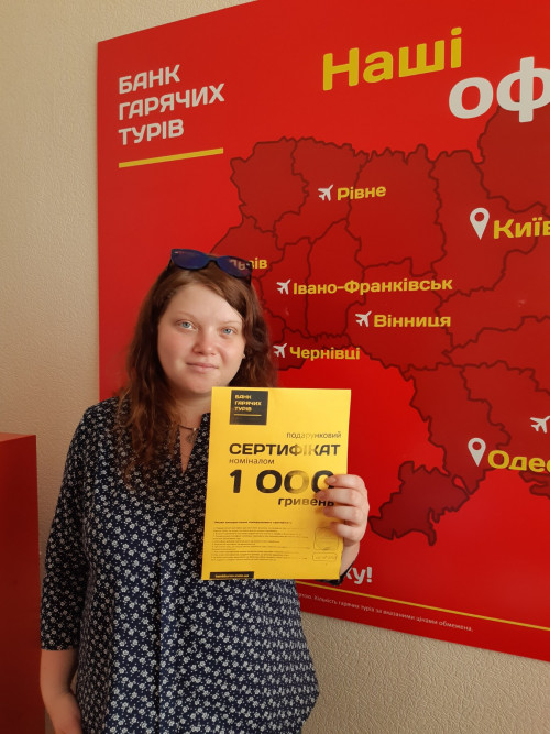 Три рази зверталась до компанії Банк гарячих турів. Цього разу придбала одразу два тури і отримала 2 сертифікати! Подобається персонал, дуже професійне та швидке обслуговуванн...