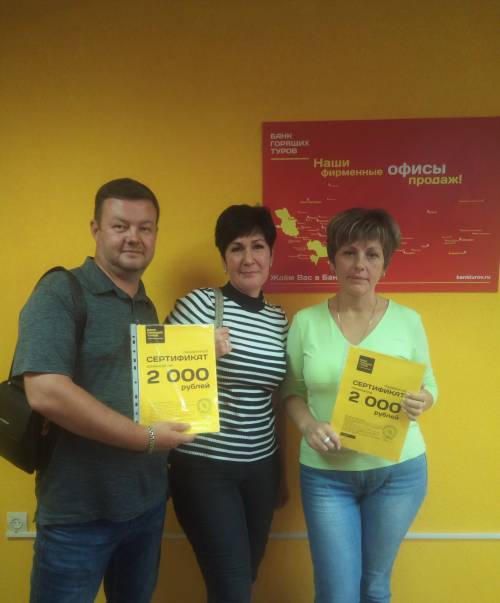 Третий раз обратились в Банк горящих туров, здесь удобно оформлять и подбирать туры. Понравился сервис в офисе продаж. Ждем скидки в будущем!...
